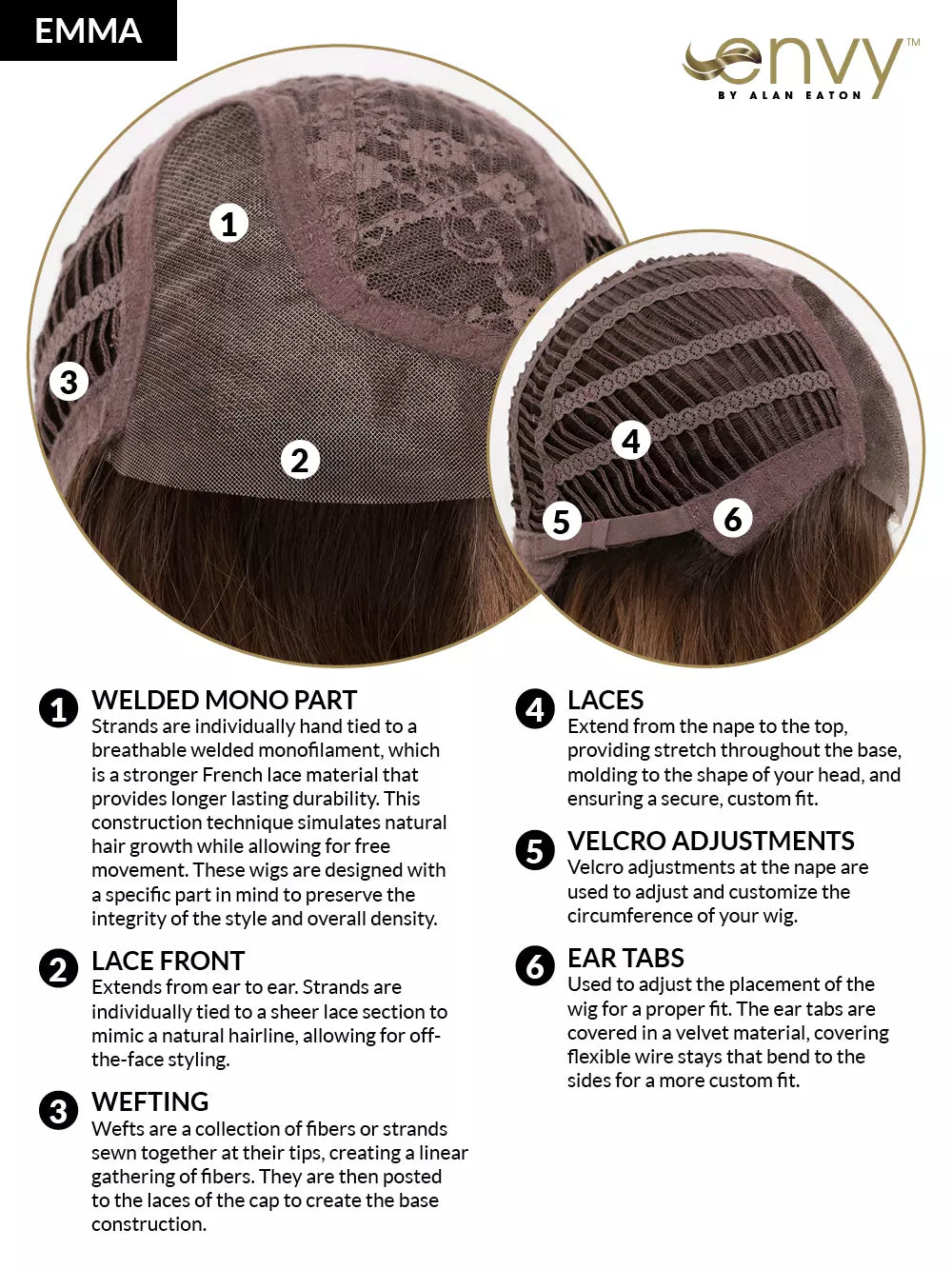 Emma is a chic, medium-length bob wig with soft waves and natural movement. The lace front and monofilament top create a seamless hairline and versatile parting, while the hand-tied cap ensures lightweight comfort. Made from human hair and heat-friendly fiber for effortless styling and everyday elegance.
