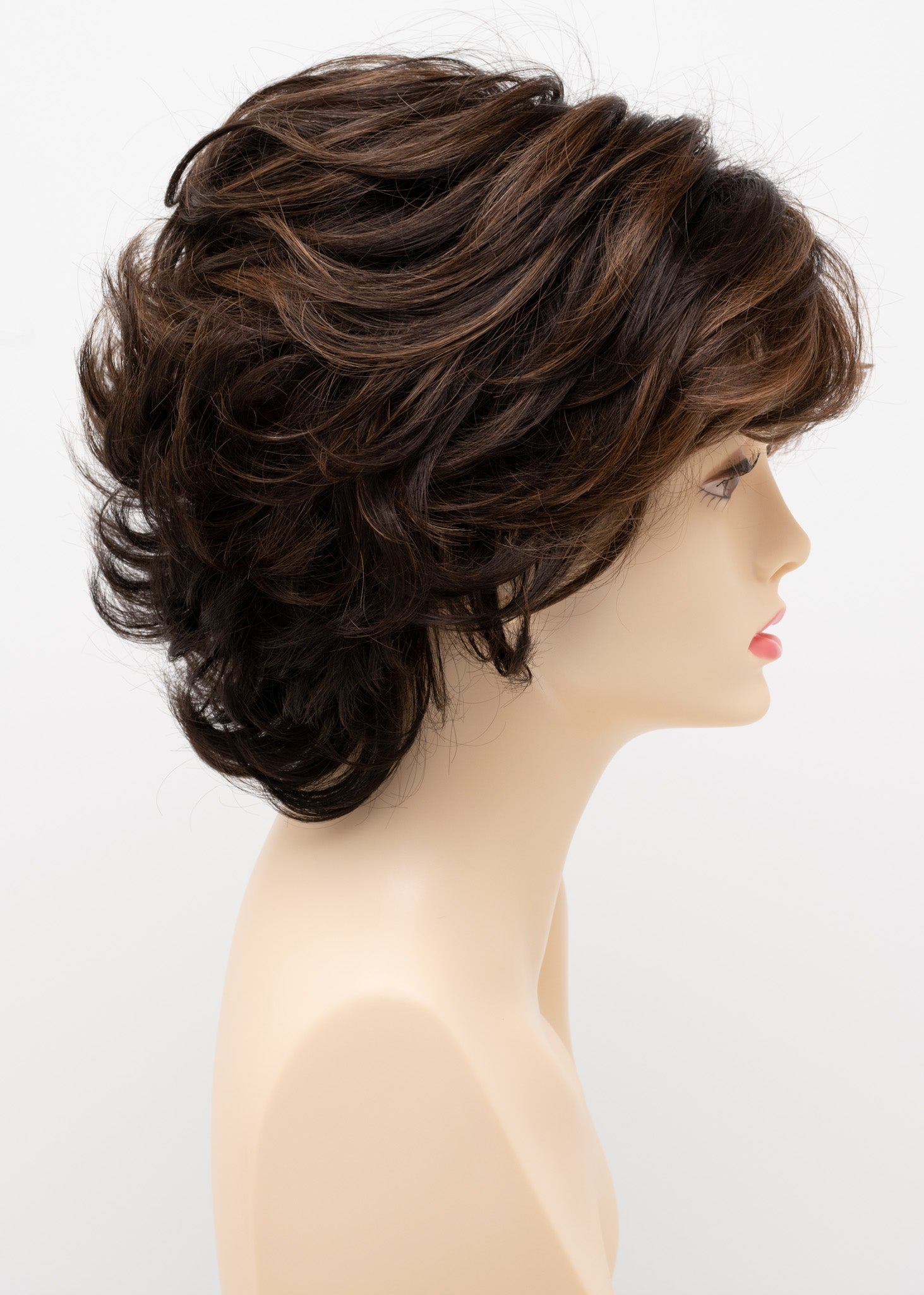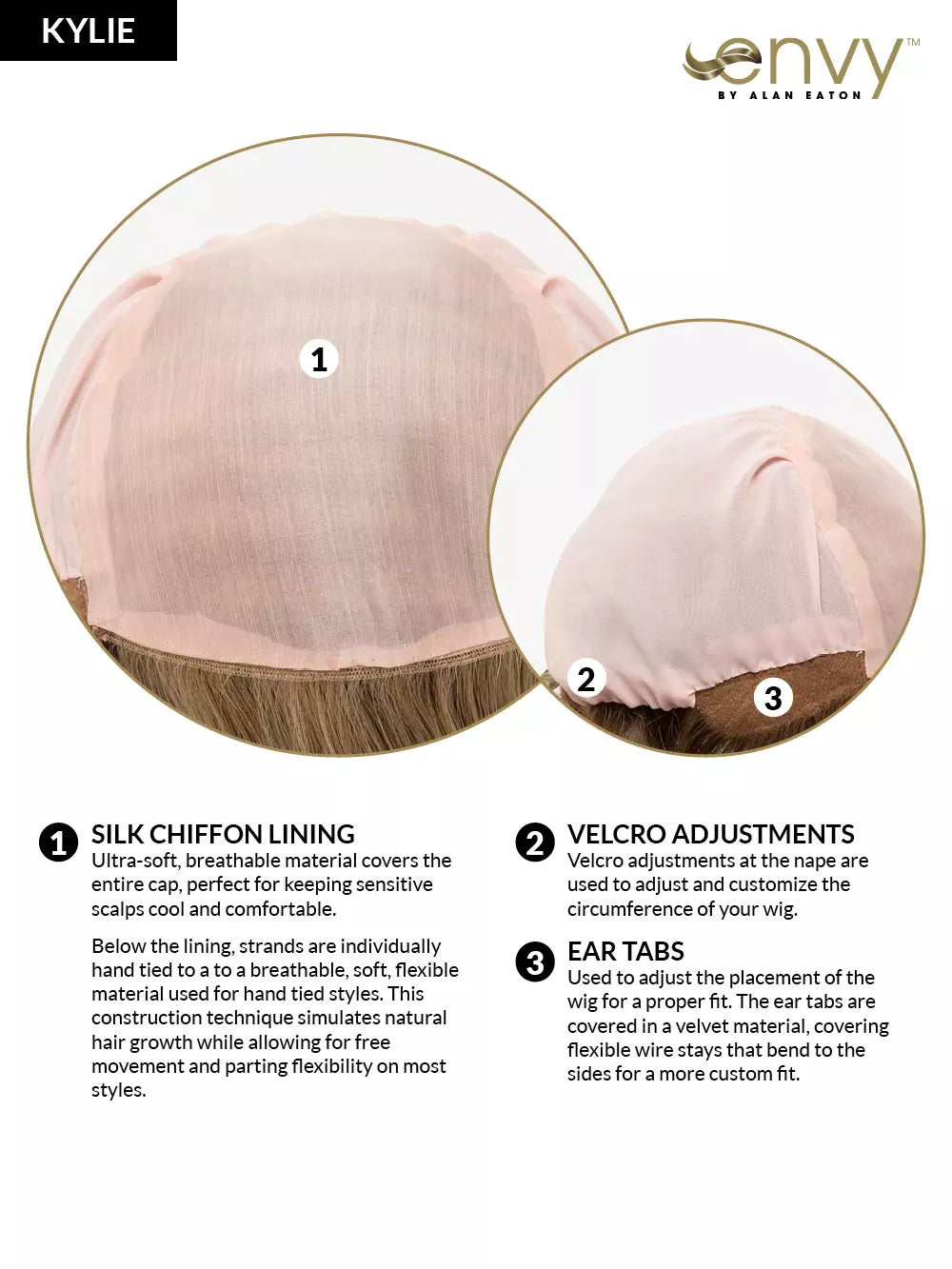 Kylie is a short, layered shag wig with sleek, straight strands and effortless texture. The monofilament top, hand-tied cap, and silk chiffon construction create natural parting, a soft feel, and lightweight comfort. Made from human hair and heat-friendly fiber for versatile, everyday styling.
