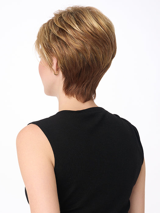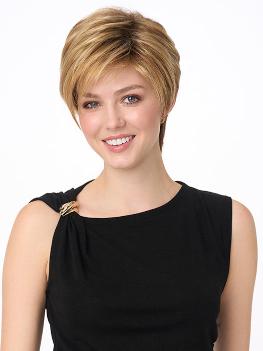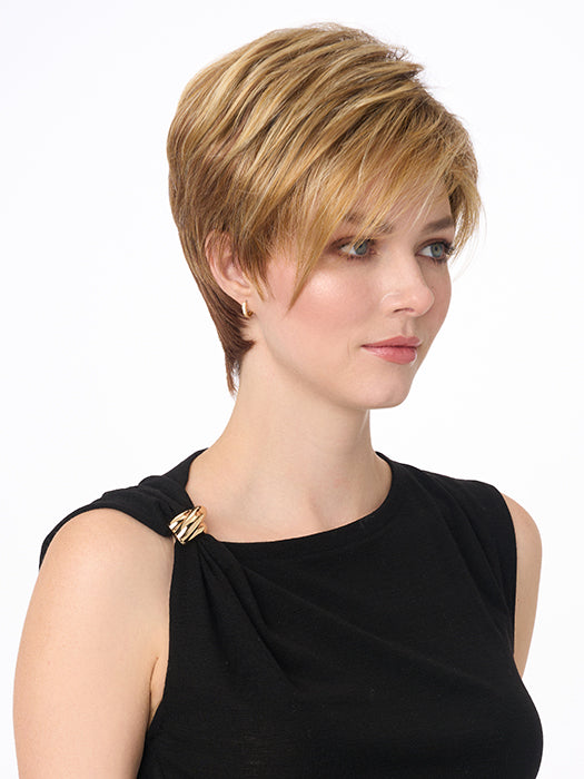 SHARI features ENVY’s breathable and lightweight Open Top construction and is available in 25 vibrant multi-dimensional colorations to fit today’s trends. With long side swept bangs, chic SHARI can be pumped up for more volume or worn sleeker and closer to the head. Also available in Average.