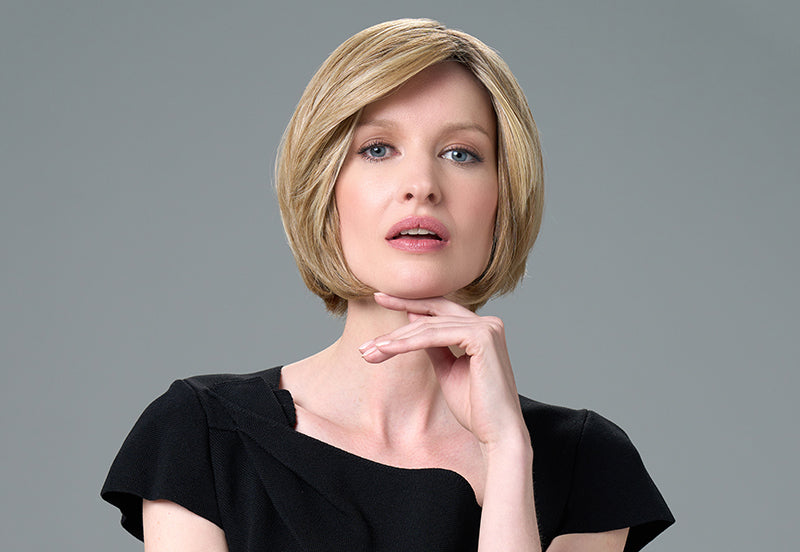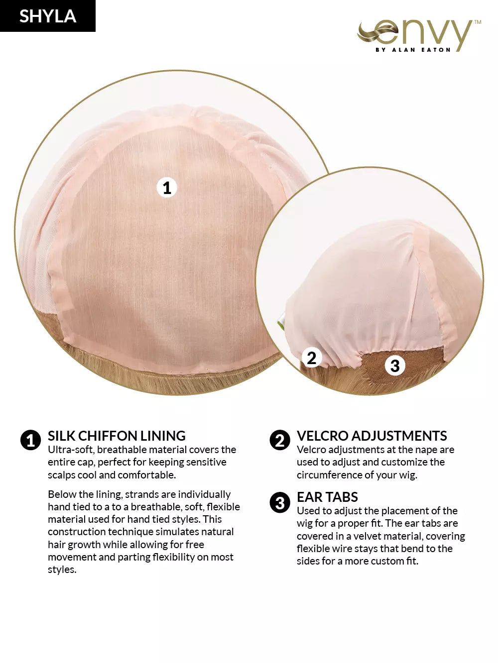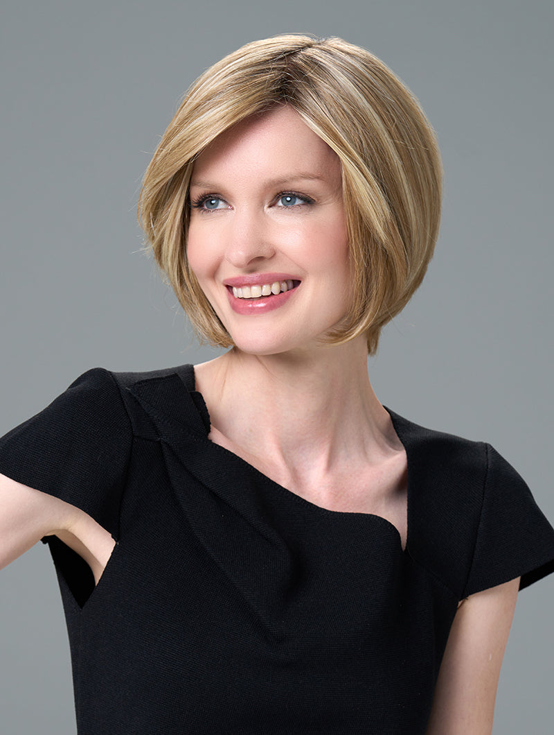 Shyla is a sleek, medium-length bob wig with smooth, straight strands and graceful movement. The monofilament top, hand-tied cap, and silk chiffon construction provide natural parting, softness, and lightweight comfort. Made from human hair and heat-friendly fiber for versatile, polished styling every day.