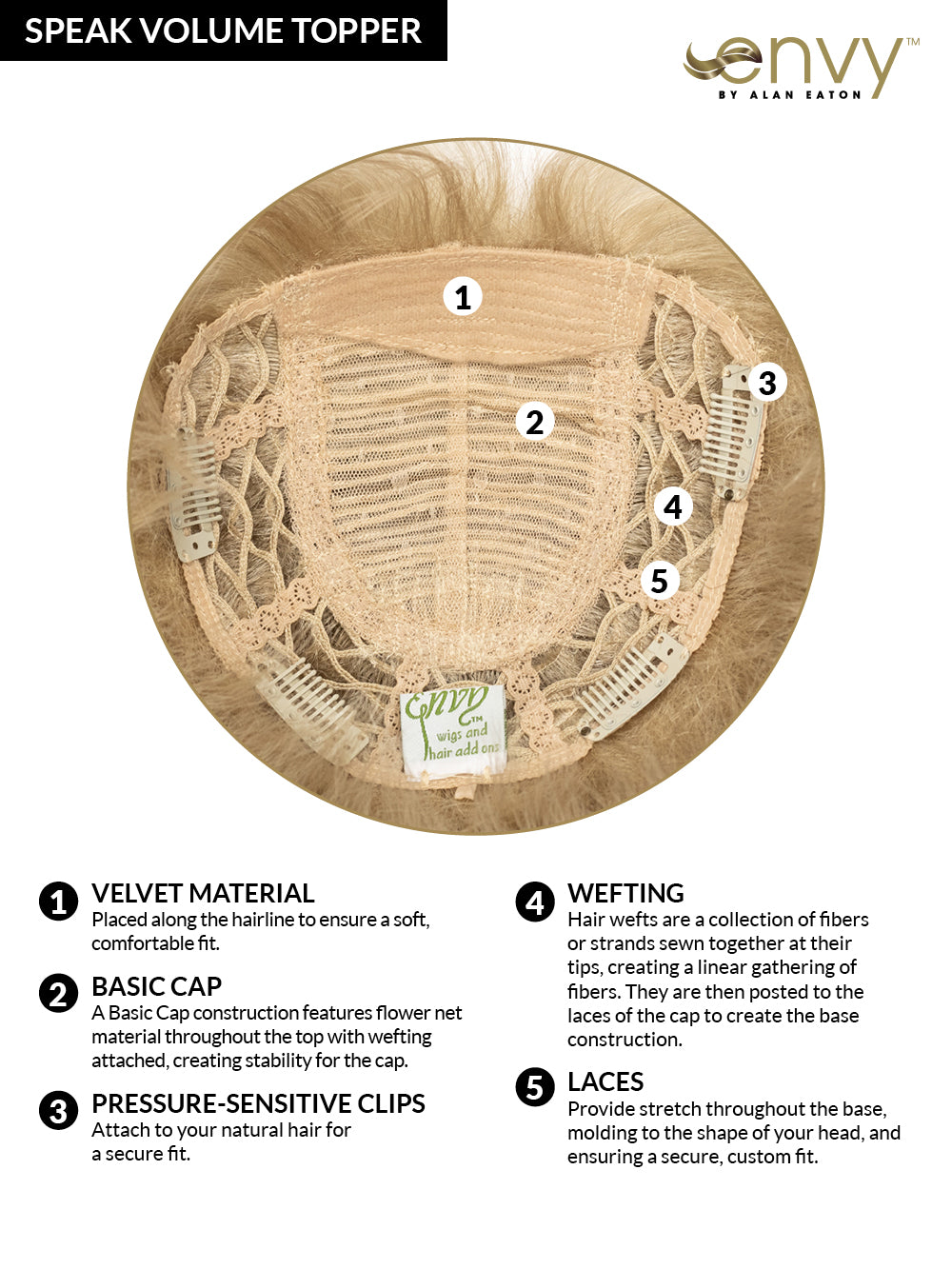 Your short “do” short on volume? Our NEW SPEAK VOLUME Topper takes it to new heights—adding solid, believable coverage in your choice of 15 multidimensional shades. With its breathable Open Top construction, this Topper provides the comfort and confidence that’ll help you breathe a little easier.