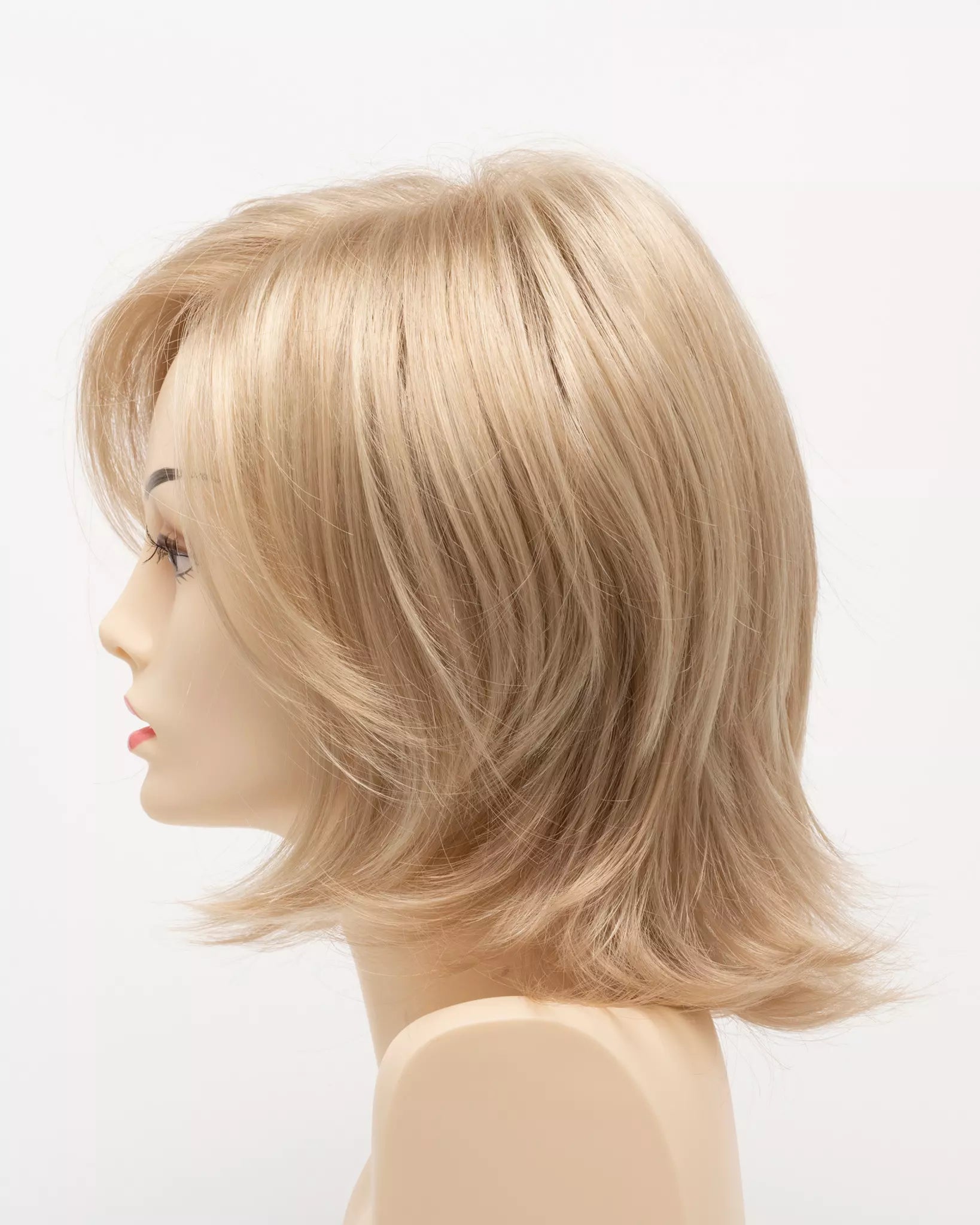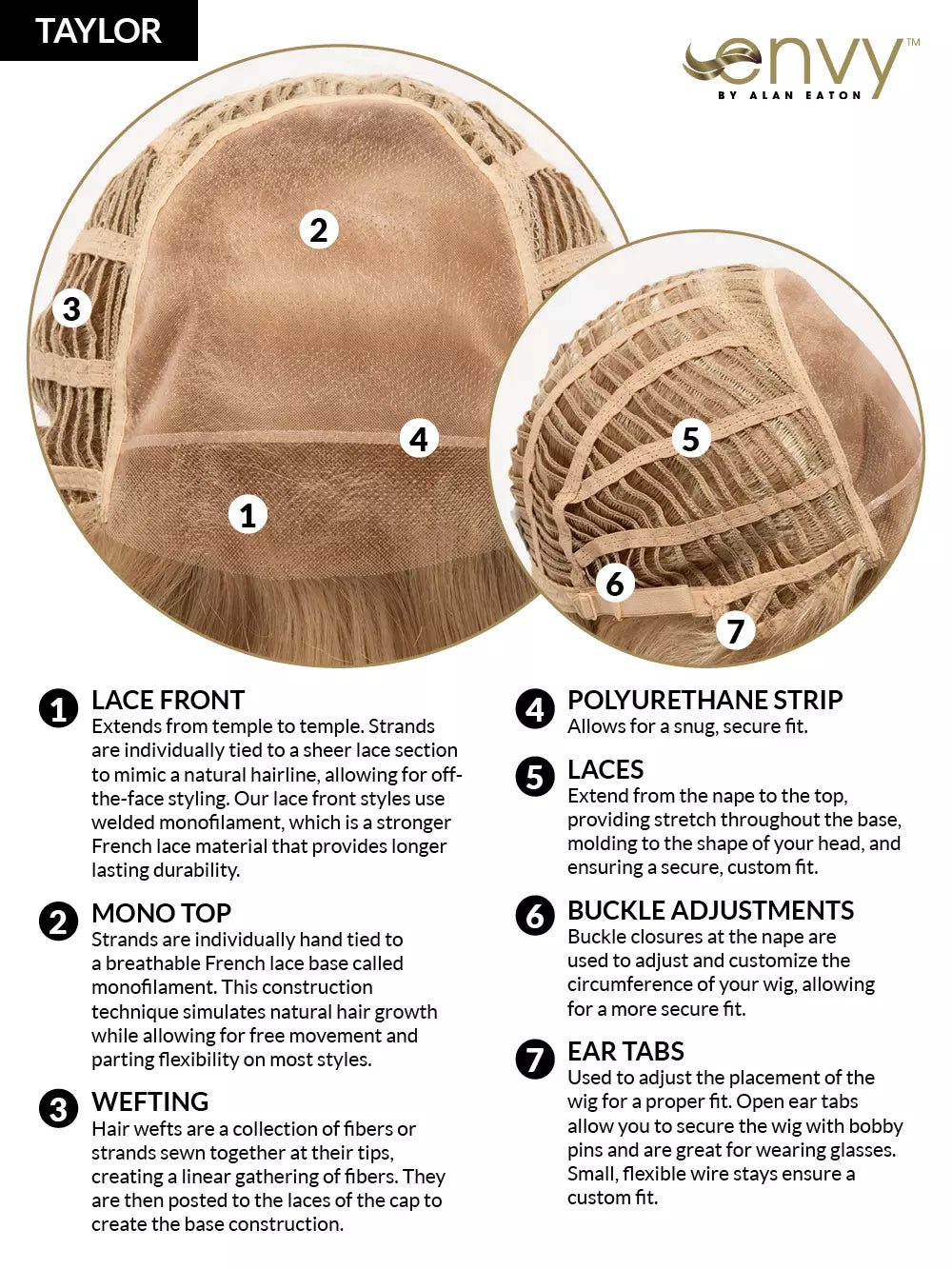 With its razored edges and flipped-up layers, TAYLOR by ENVY gives a new twist to the shoulder-length bob. Hand-Tied features and the latest Lace Front technology mimic hair’s natural growth and hairline—allowing its soft layers to be combed to either side or off-center for sophisticated versatility.