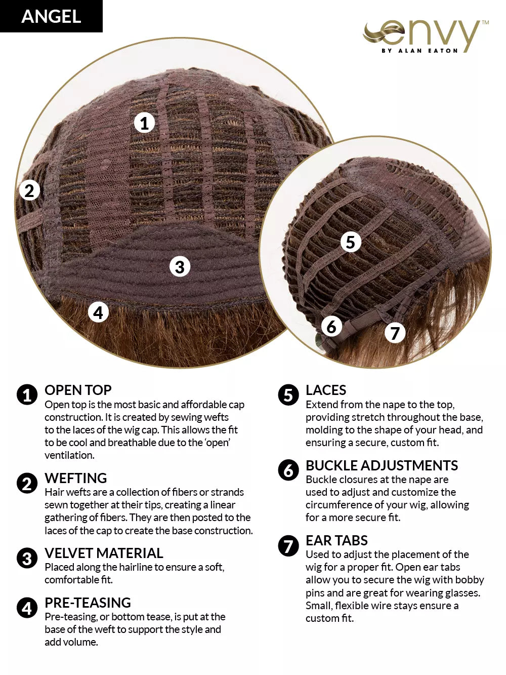Pre-teasing gives ENVY’s ANGEL added volume, while face-framing bangs add a feminine touch. Featuring an Open Top design for extra breathability and adjustable ear tabs for a more secure fit, this pixie-with-a-twist offers comfort AND confidence.