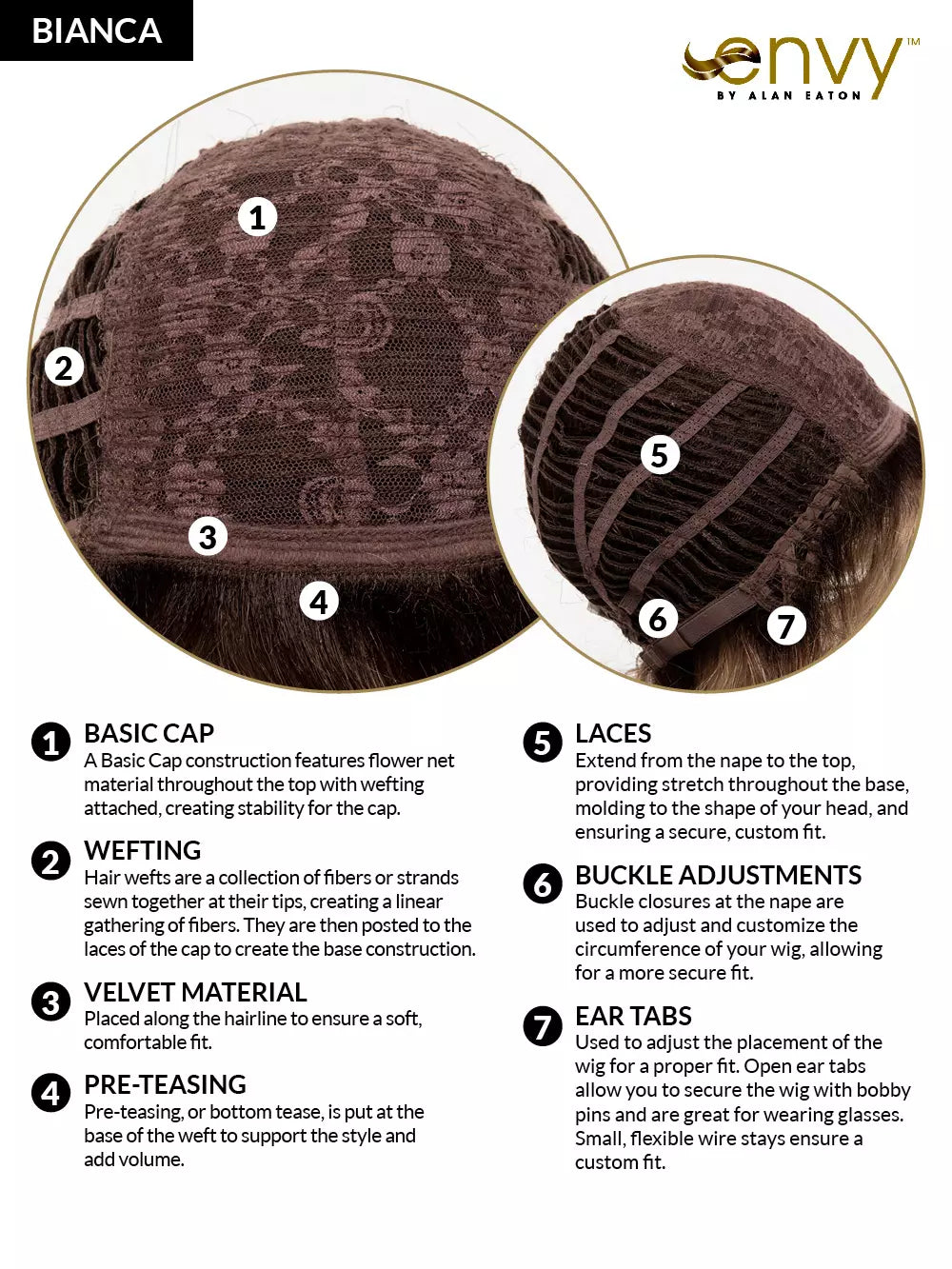Long, side-swept bangs and artfully messy curls add a breezy ease to BIANCA’s mid-length bob. And with our Open Top construction keeping you comfortable and cool, it’s sure to give you a confidence that everyone will ENVY!