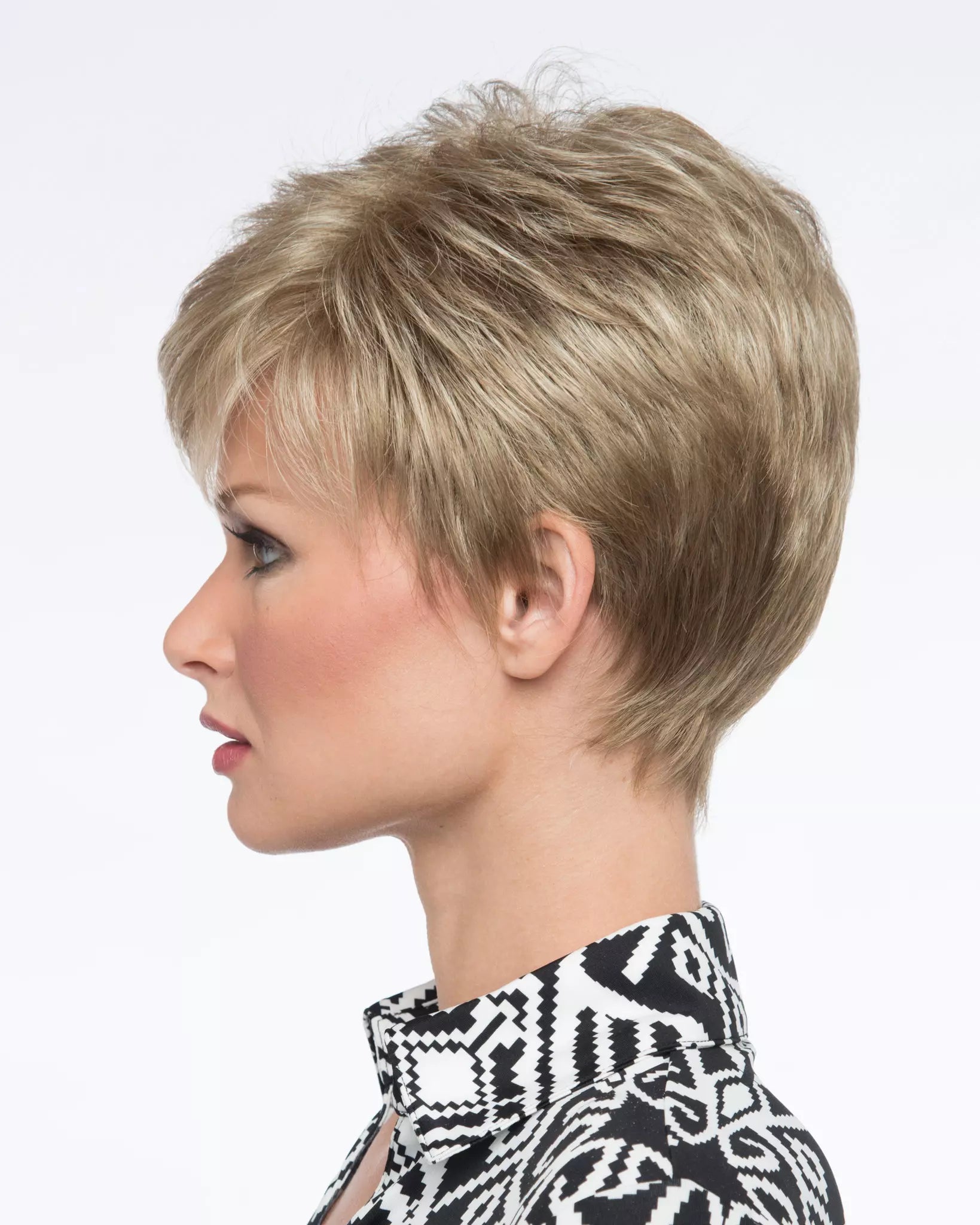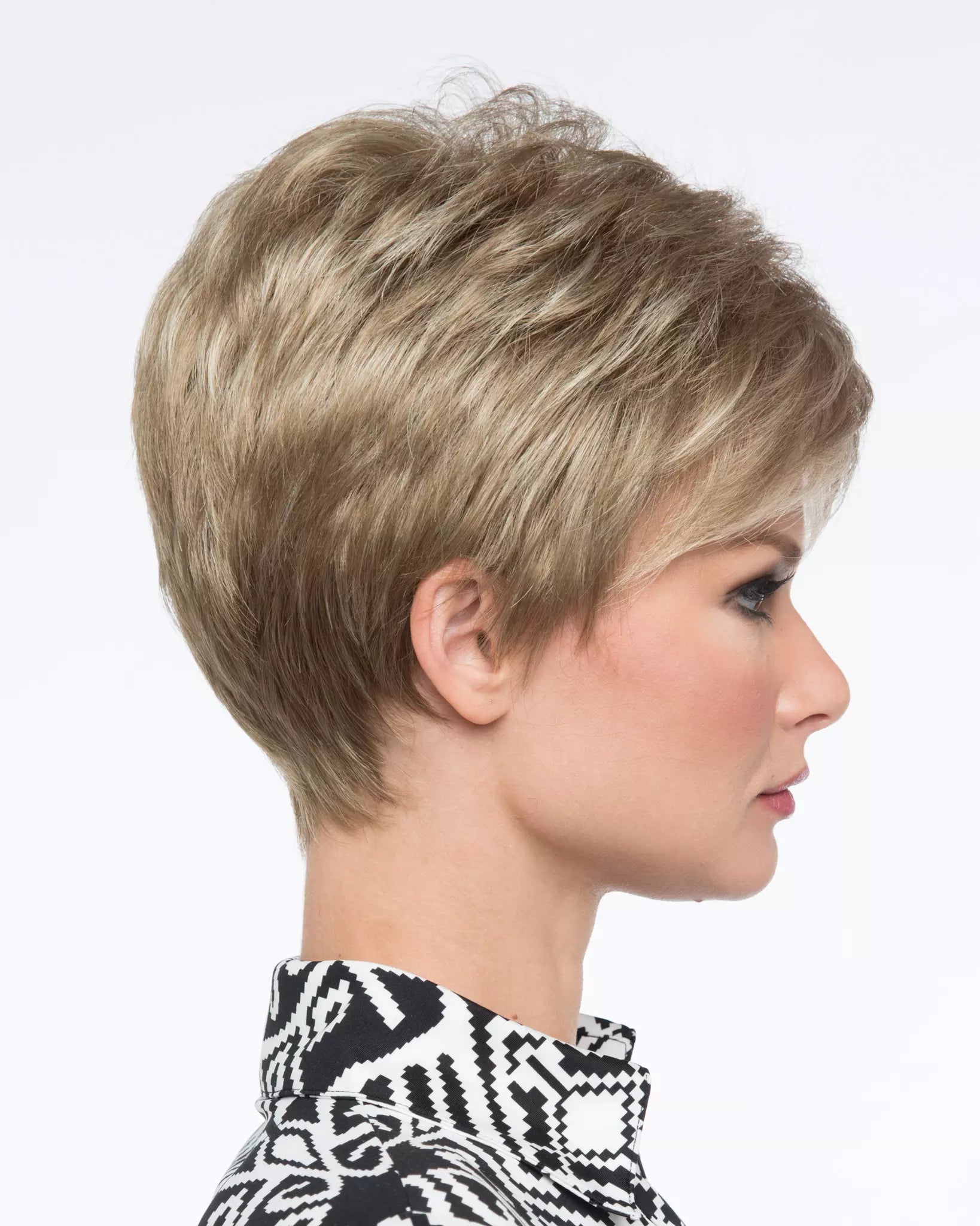 Side-swept bangs, piece-y layers, and a boost of volume at the crown give this classic pixie more than a little attitude. Like all our synthetic styles, JAMIE is made from only the finest 100% Kanekalon® fiber—renowned for holding its shade, shine, and shape. And with an airy Open Top that even the most sensitive scalps will love, JAMIE is the very definition of feminine cool.