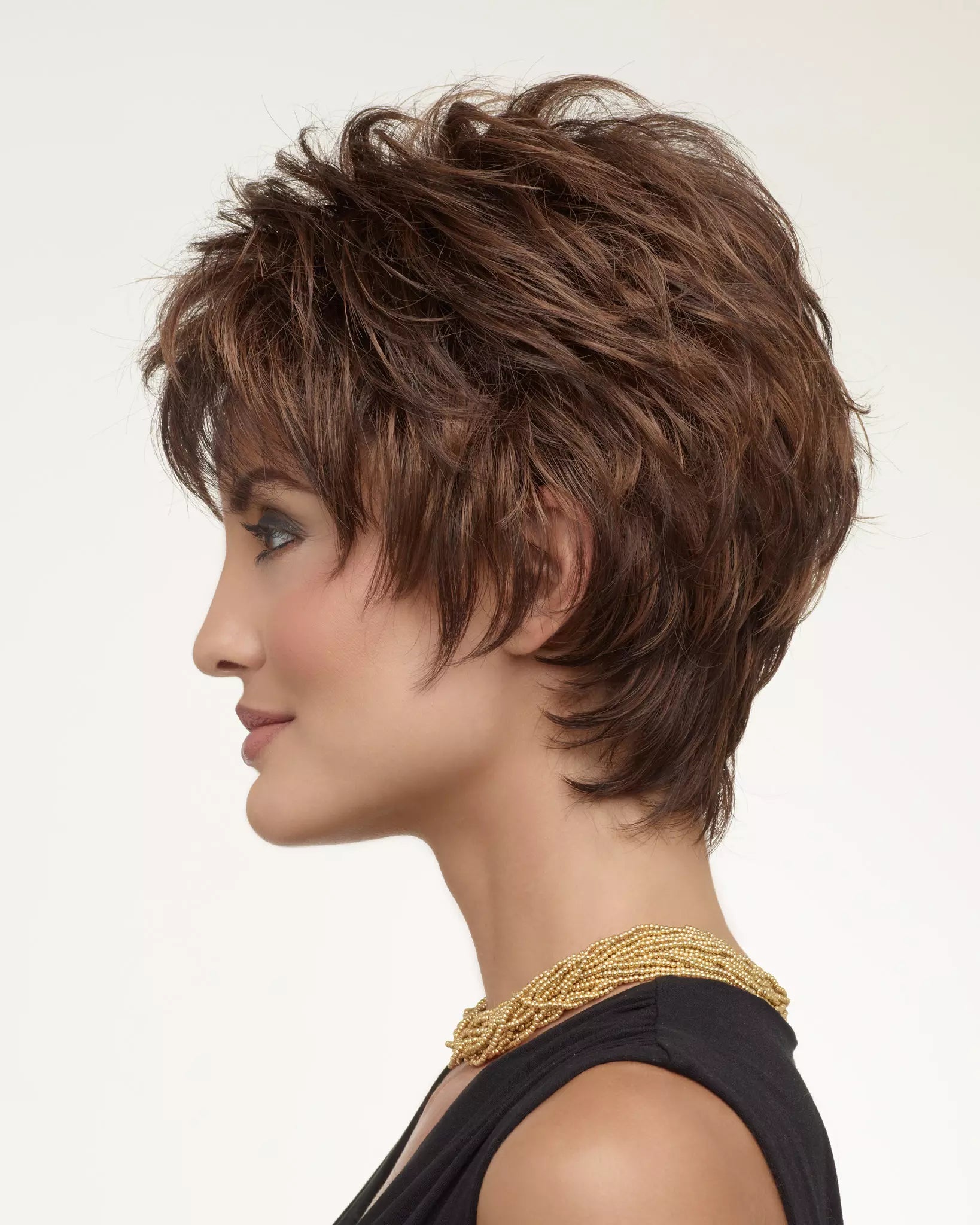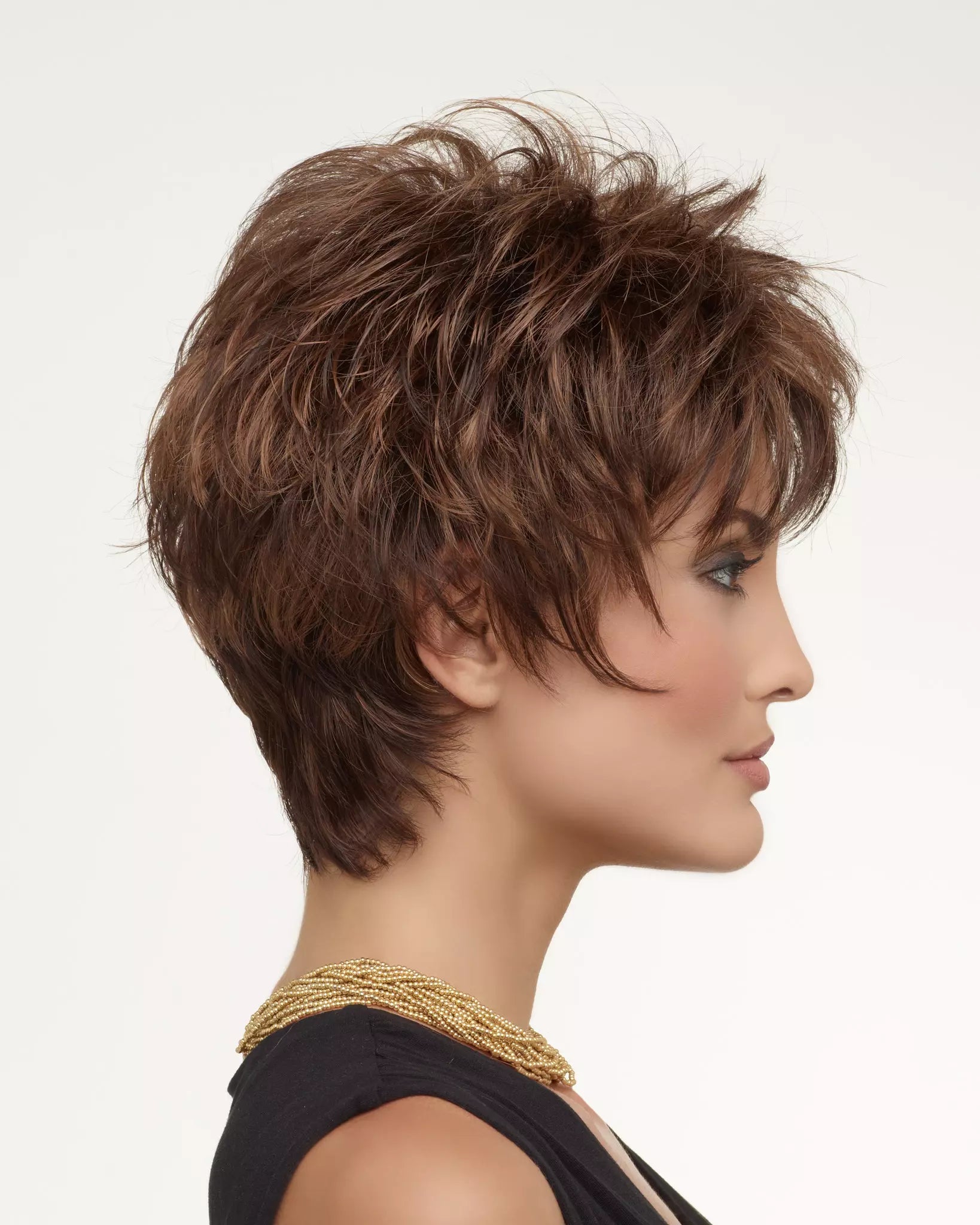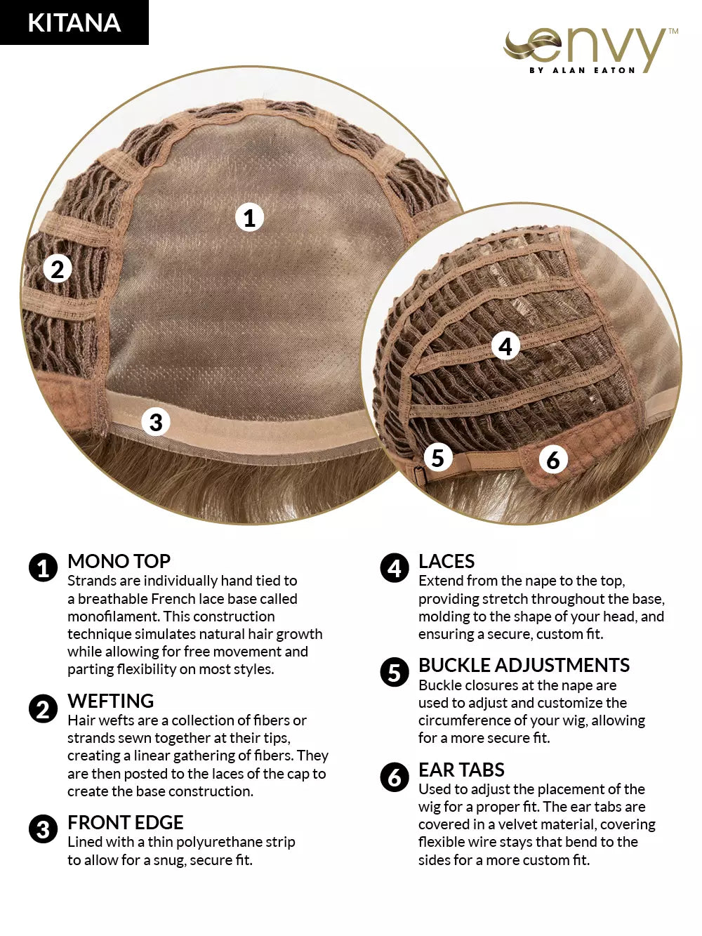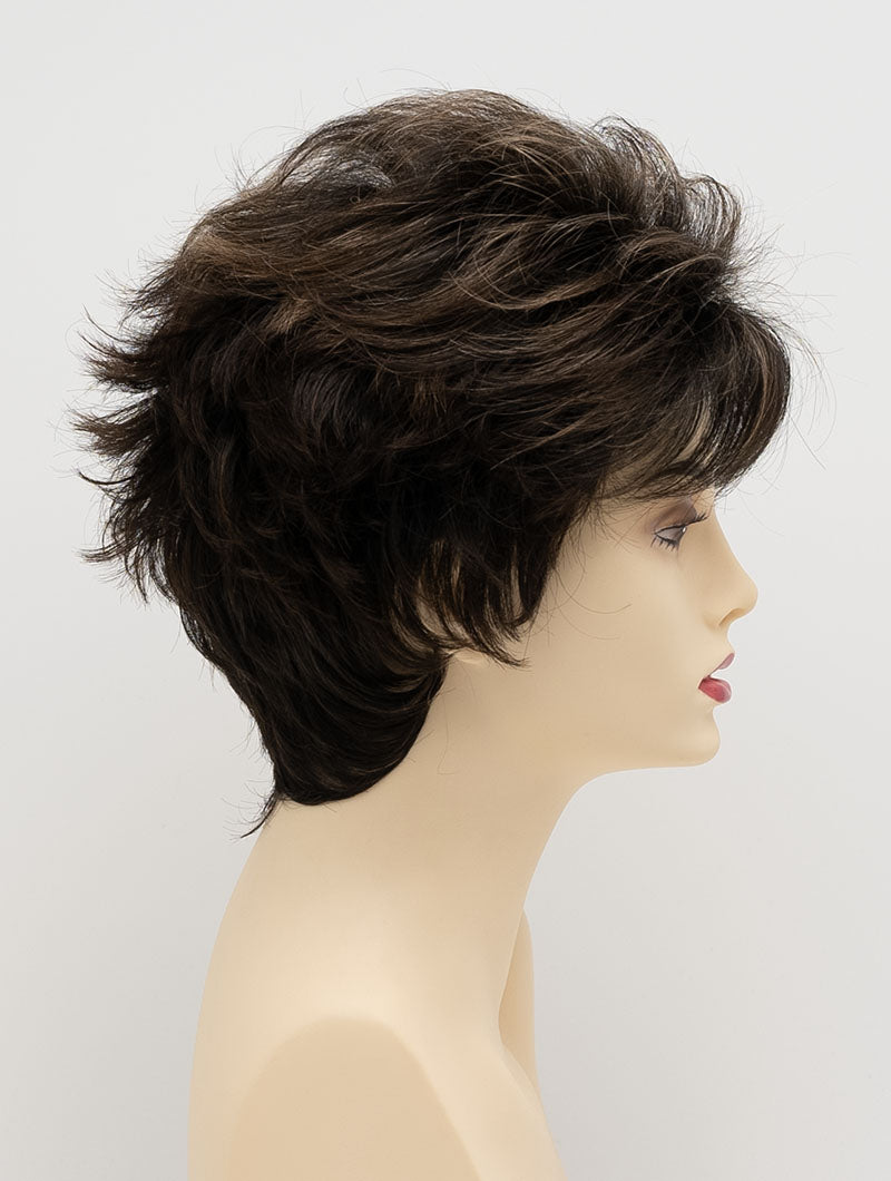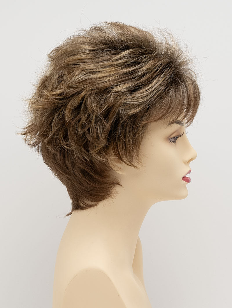 KITANA by ENVY is spunky and textured with layers galore! The tapered, extended nape offers a soft hugging neckline, while razored edges frame the face for that deconstructed look loved by style conscious women. Its breathable Mono Top construction creates the look and movement of real hair, giving you the flexibility to add a little lift with your favorite styling products or comb it from side to side.