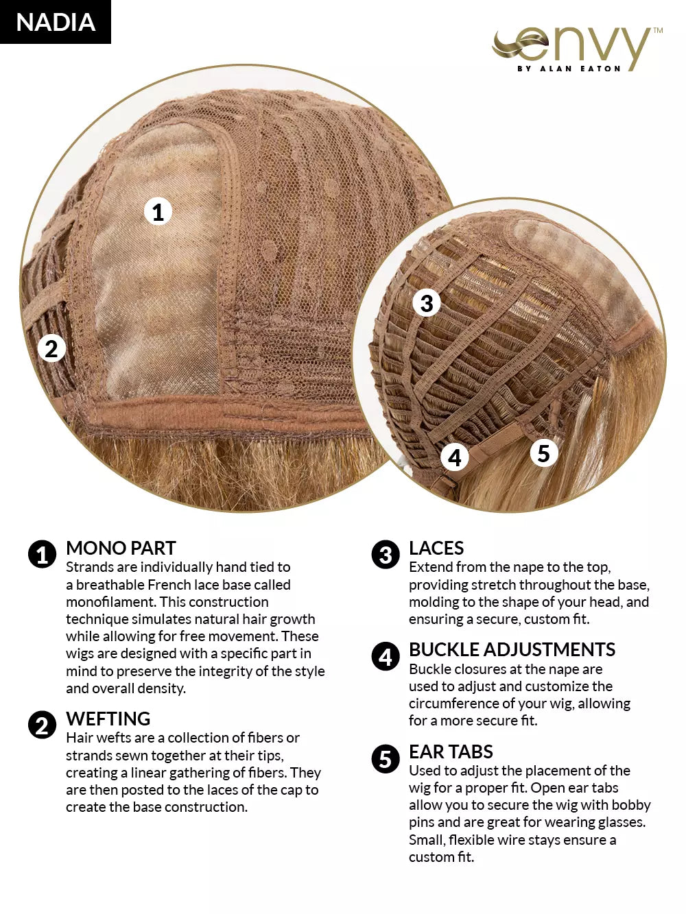 Perfect layers and flipped-up ends give NADIA a charismatic appeal. It’s shoulder-skimming layers provide movement and added volume while appearing to grow out of your scalp—thanks to ENVY’s Mono Part, Hand-Tried construction . Also available in Petite.