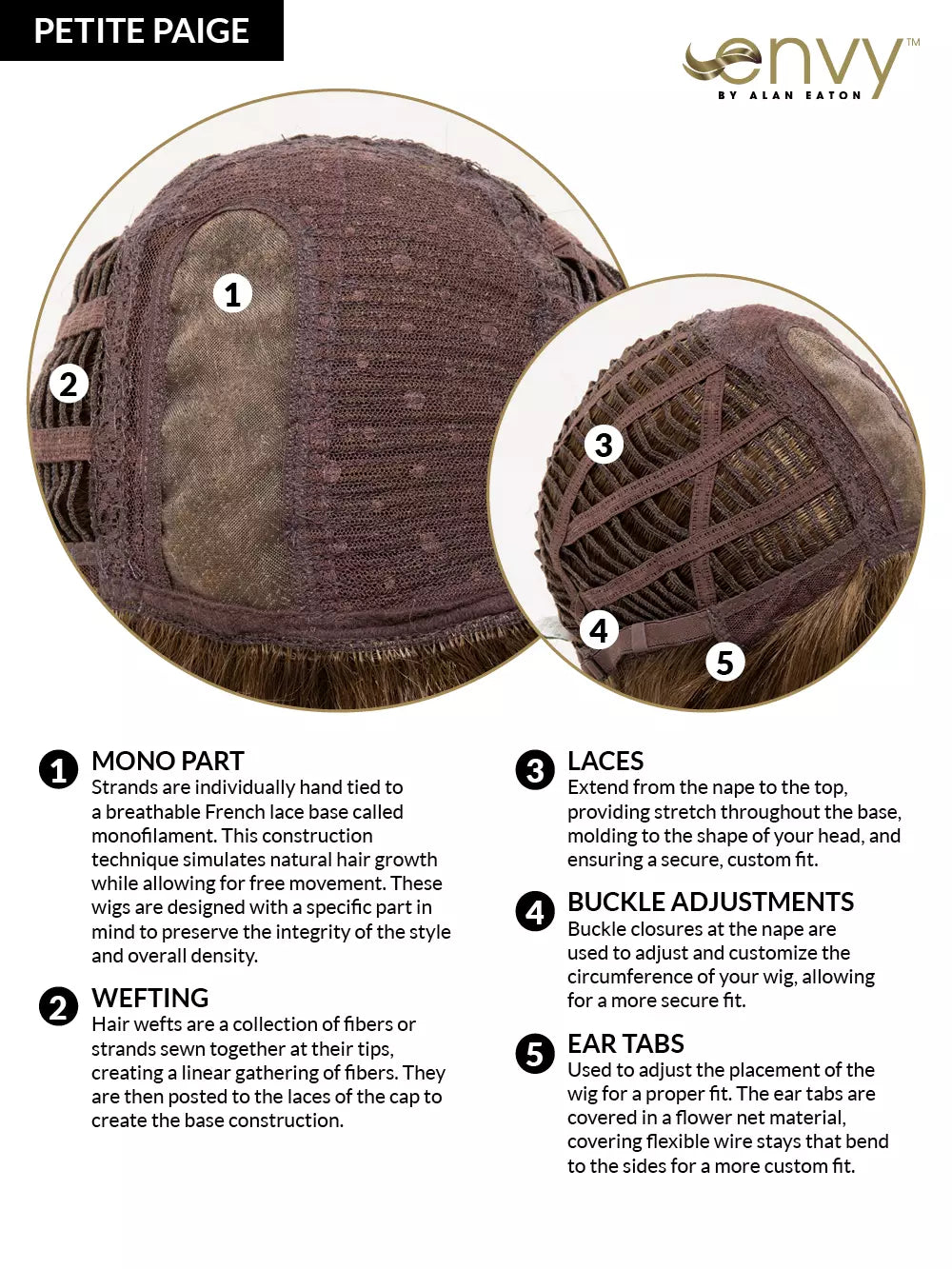 PETITE PAIGE’s Hand-Tied Mono Part construction offers the most natural appearance in alternative hair today! Bringing modern technology to this classic, constantly reinvented page-boy style, PETITE PAIGE suits multiple ages and face shapes.