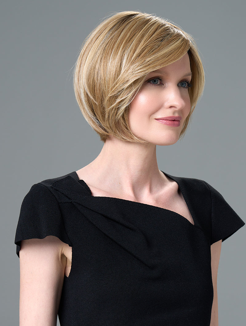 Shyla is a sleek, medium-length bob wig with smooth, straight strands and graceful movement. The monofilament top, hand-tied cap, and silk chiffon construction provide natural parting, softness, and lightweight comfort. Made from human hair and heat-friendly fiber for versatile, polished styling every day.