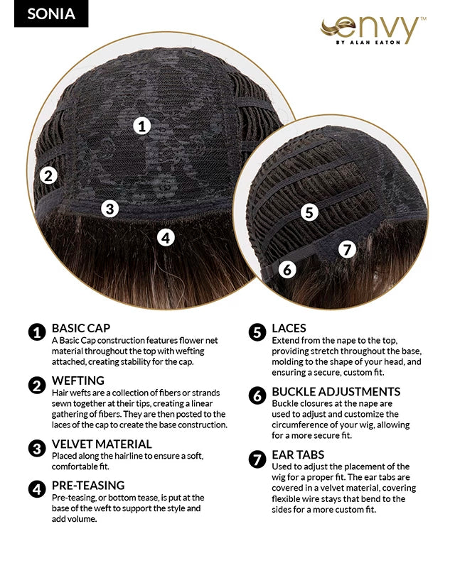 A better-than-good hair day is yours with the bouncy, shoulder-length layers and side-swept bangs of SONIA by ENVY. Featuring whisper-soft netting dyed a complementary shade to ensure complete coverage; and a breathable Open Top that allows air to circulate freely, SONIA promises you’ll look AND feel fantastic.