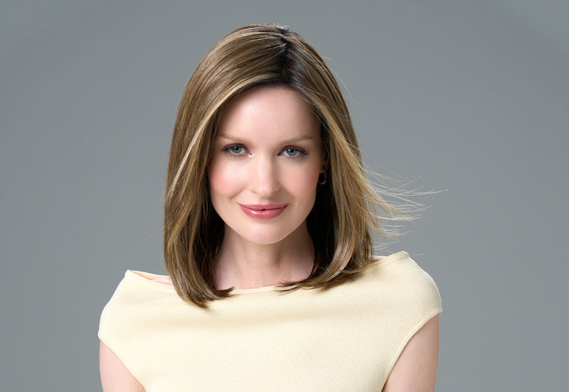 Zoey is a mid-length wig with face framing layers. The lace front and monofilament top create a seamless hairline and natural movement, while the hand-tied cap ensures lightweight comfort. Crafted from human hair and heat-friendly fiber for endless styling versatility and effortless elegance.